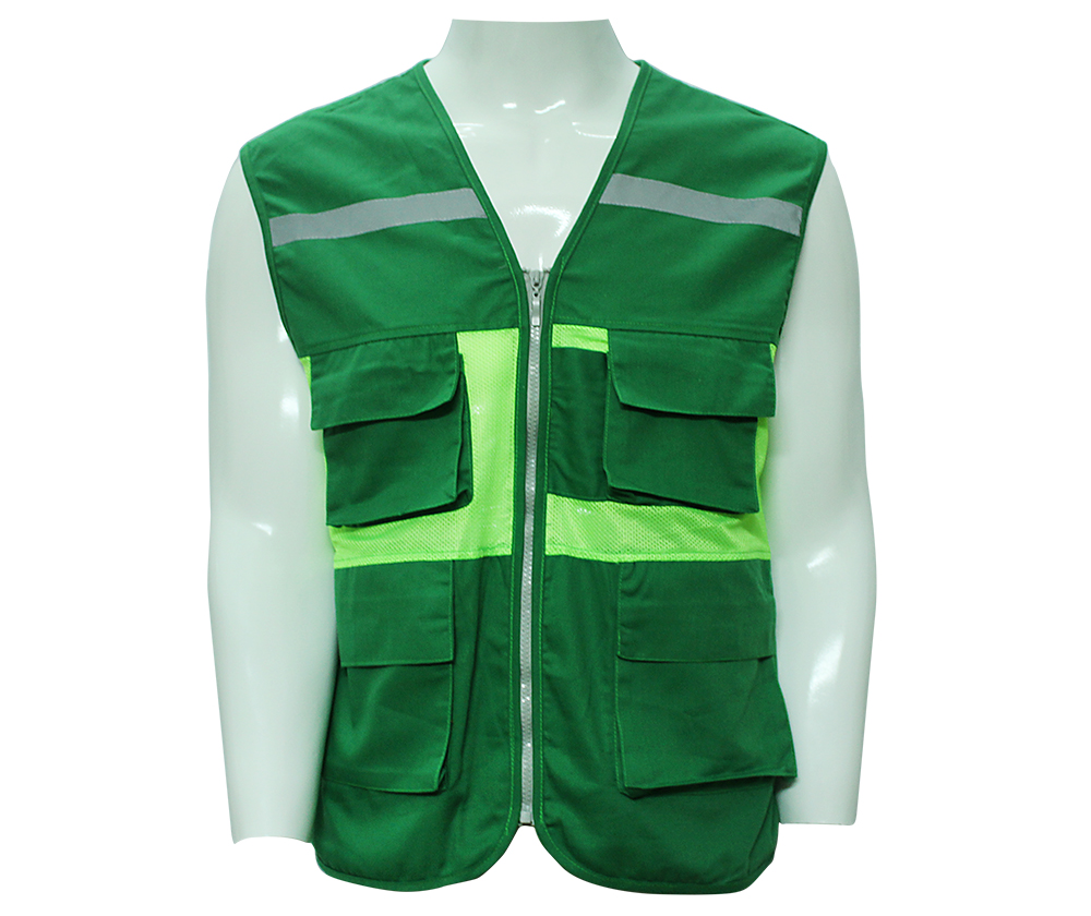 Áo Gile có phản quang trước ngực và sau thân áo, có 4 túi hộp, 2 túi khóa ngang, dùng khóa séc tiện lợi.